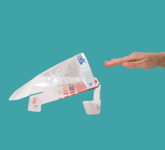 Clean Hands® befindet sich auf der Basis. Setzen Sie es einfach auf und lösen Sie es vom Magneten (BASIC-Modell) oder vom Streifen (MULTIPURPOSE-Modell).